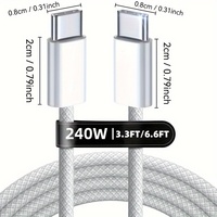 شحن سريع للغاية 2 متر 6.6 قدم وات كابل نايلون مزدوج الرأس مضفر ذكور إلى ذكور تزامن بيانات لهاتف آيفون 16 15 وسامسونج ون بلس