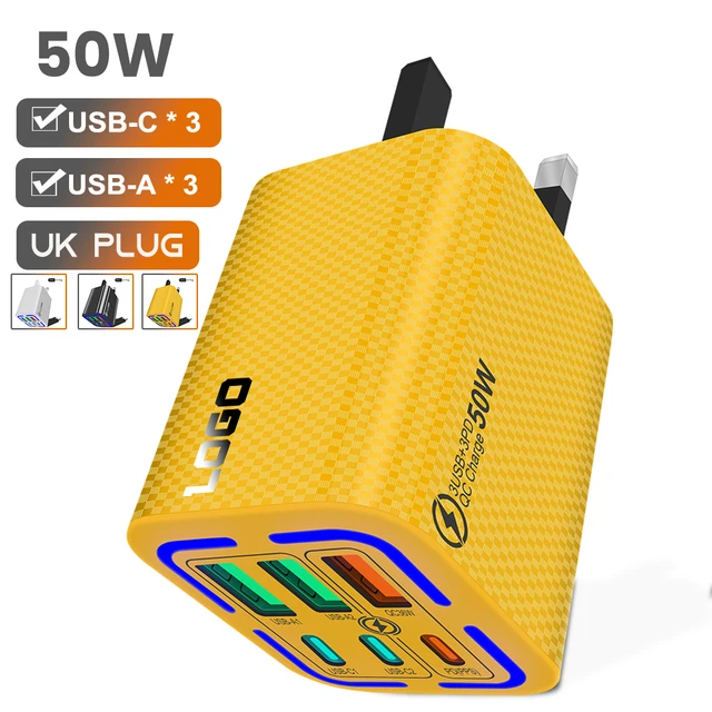 United Kingdom UK PLUG PD 50W USB Type-C Super Fast Charger Quick Charge 3.0 Wall Adapter for Xiaomi IPhone 16 Samsung Oneplus