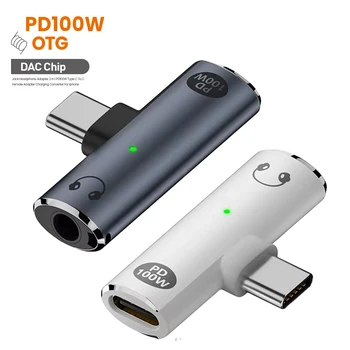 USB Type C to 3 5mm Jack Headphone Adapter 2 in 1 PD100W 60W Type C to C Female Adapter Charging Converter for iphone Huawei
