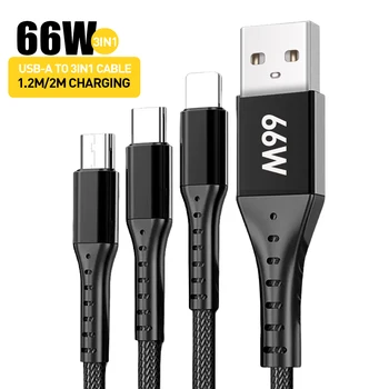 Cable de Carga USB C EONLINE 1.2M 2M 5A 66W 3 en 1 de Carga Súper Rápida para Teléfono Móvil IPHONE 17 Tipo-C Android