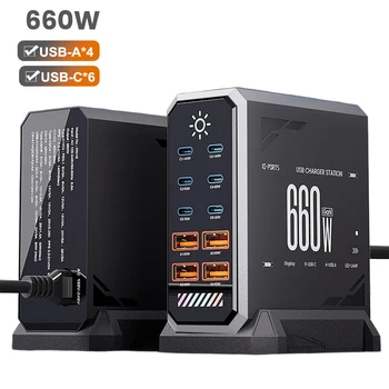 660W GaN Charger PPS PD 100W USB Type C 6-Port Digital Display Desktop Fast Charging Station for MacBook iPhone Samsung