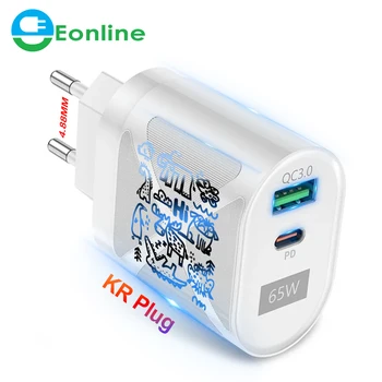 EONLINE 3D EU US UK AU KR PLUG 65W GaN Fast Charge Adapter for Type C PD Quick Charger for iPhone 15 iPad Huawei Xiaomi Samsung