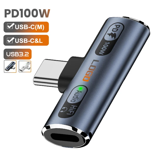 2 in 2 14cm USB-L USB C to 3.5mm Headphone Jack Fast Charger Adapter Jack Aux Dongle Converter for iPhone Galaxy iPad Pixel