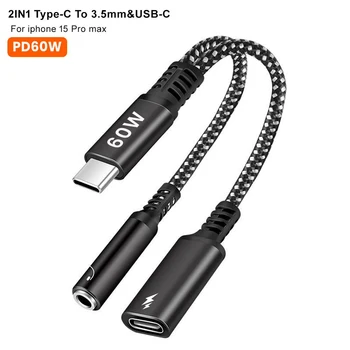 2IN1 USB C to 3.5mm Headphone and Charger Adapter 2 in 1 Type C to Aux Mic Jack with PD Fast Charging Dongle for Headphone
