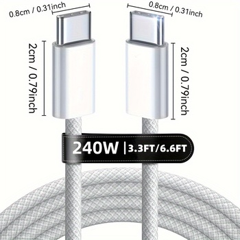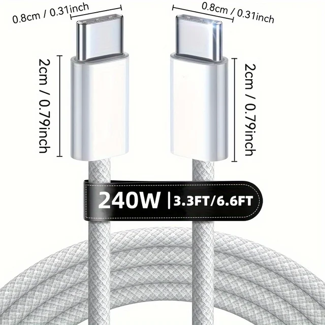 2M 6.6FT 240W Super Fast Charge USB-C Cable Dual-Head Nylon Braided Male to Male Data Sync for iphone 16 15 Samsung One Plus