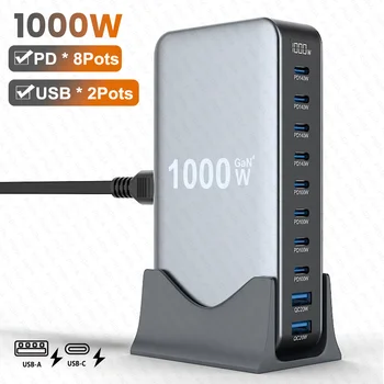 1000W 10-Port GaN 4 Desktop Charging Station with 240W 6.6 ft Data Cable - Compatible with Tablets Phones Laptops Gaming