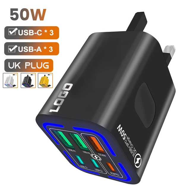 United Kingdom UK PLUG PD 50W USB Type-C Super Fast Charger Quick Charge 3.0 Wall Adapter for Xiaomi IPhone 16 Samsung Oneplus