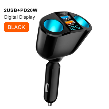 Car Cigarette Lighter Splitter 2-Socket Cigarette Lighter Adapter with LED Dual USB QC3.0 Type-C 20W PD Fast Car Charger