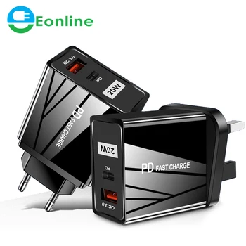 Eonline EU US UK 20W USB-C Quick Charger PD QC 3.0 Type C Fast Charging for iPhone 13 Mobile Phone USB Charge EU US Adapte
