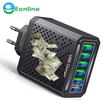 EONLINE 3D 3.1A 6 Ports Charge USB Charge Adapter for iPhone 15 Pro Max Plus XS XR Xiaomi QC3.0 EU/US/UK/KR Portable Charger