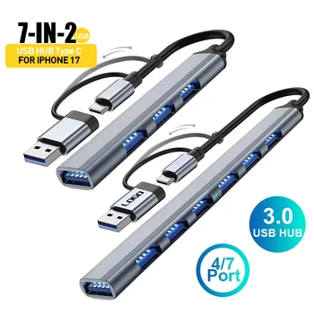 7-in-2 USB HUB Type C HUB Multi USB Splitter USB Adapter OTG USB to USB 3.0 HUB for Macbook Pro 13 15 Air Mi Pro PC Laptop