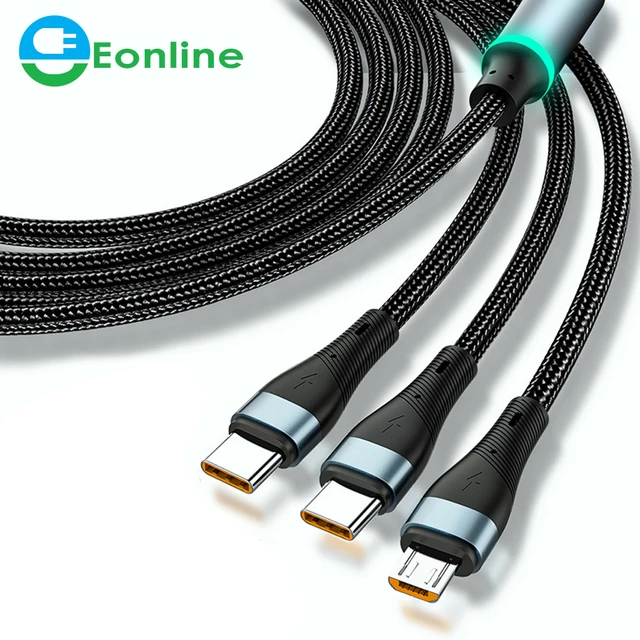 EONLINE 3in1 USB Data Cable 6A 100w for Phone Fast Charger Charging Cable Type-c for Samsung Poco X4 Pro Xiaomi Micro USB Wire