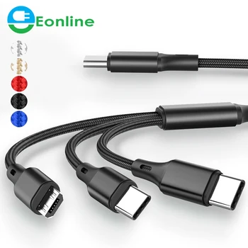 EONLINE 3in1 USB 데이터 케이블 6A 100w 휴대폰 고속 충전 케이블 타입-C 삼성 포코 X4 프로 샤오미 마이크로 USB 케이블