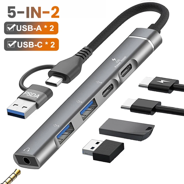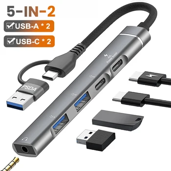 OEM LOGO 1 adet Usb C Hub ile USB-L Port okuma Usb Sd/Tf hafıza kartı ile 2 Usb tip C Usb 3.0 portu 5-In-1 çoklu adaptör Usb Hub