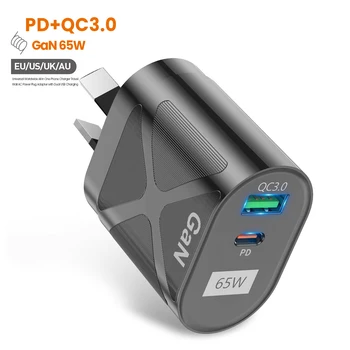 65W GaN USB C Charger Quick Charge KR AU EU US Plug PD USB-C Type C Fast Charger for iPhone 17 16 Xiaomi Samsung S22 Macbook