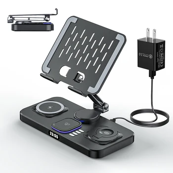 30W Foldable Charging Station for Multiple for iPad Charging Station with Clock Display Night Light Tablet for iPhone 17 Holder